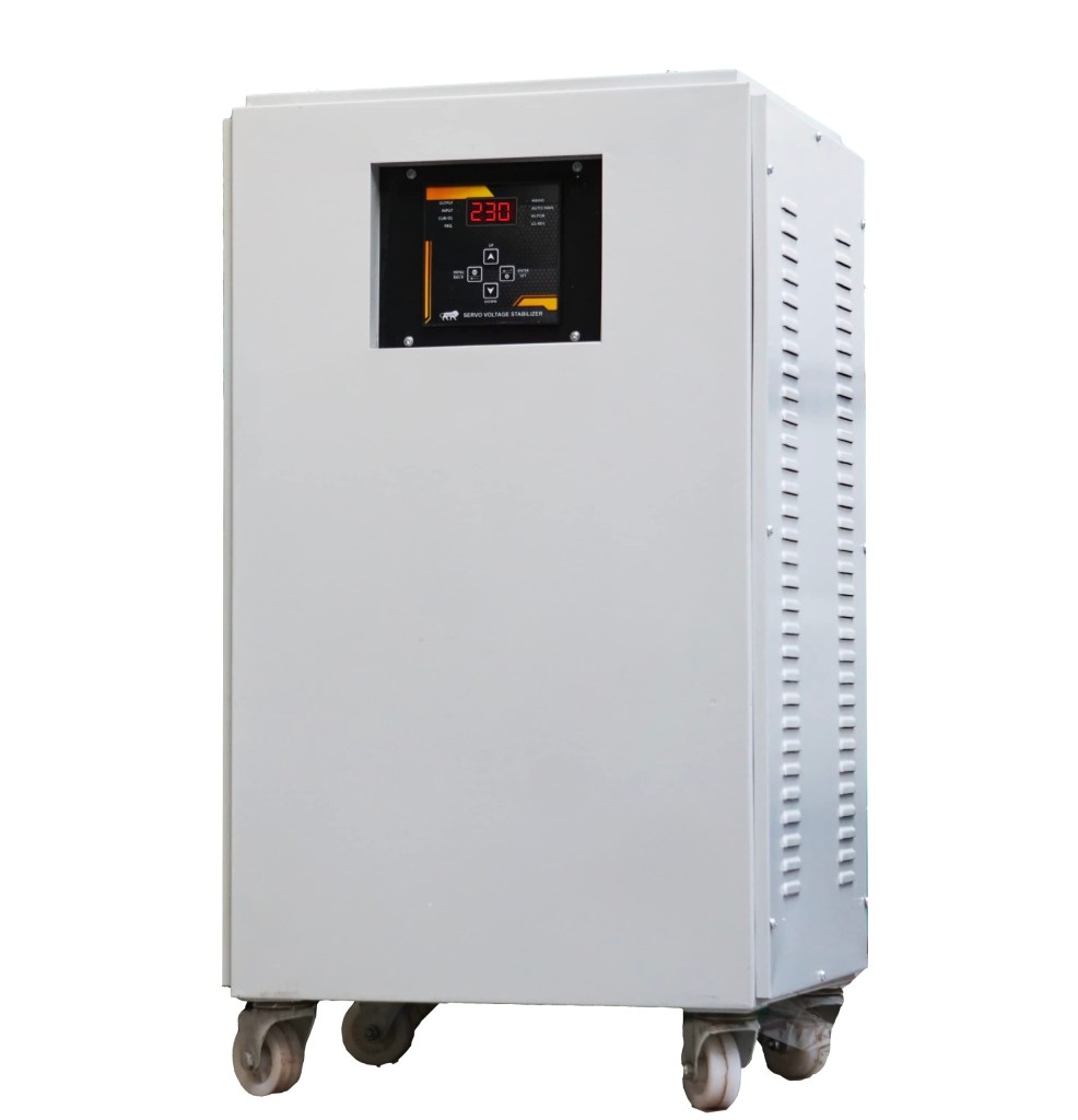 Designed for three-phase systems, these stabilizers maintain voltage balance, withstand high inrush currents, and remain unaffected by power factor or frequency variations. While they require periodic maintenance, their efficiency and durability make them ideal for industrial and commercial setups.